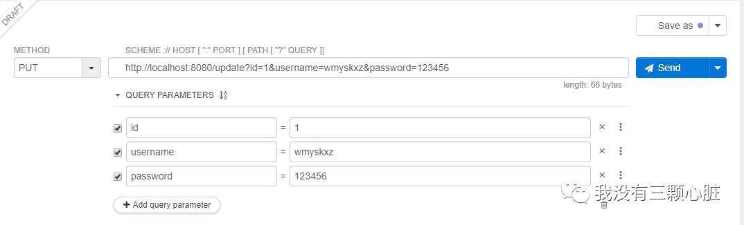 然后我们使用http://localhost:8080/update?id=1&username=wmyskxz&password=123456