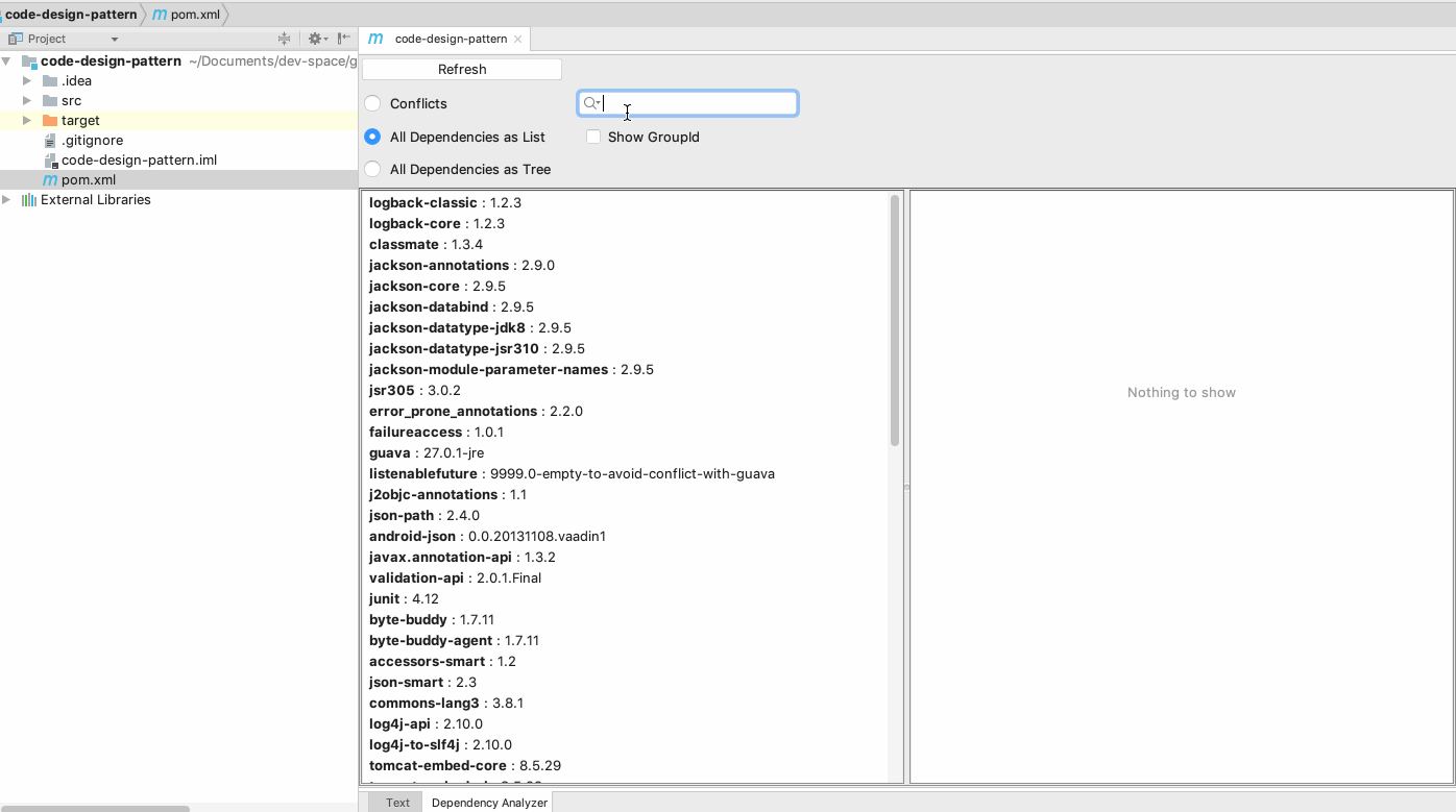 如果 Maven 引入的 jar 包有冲突,可以使用 Maven Helper 插件来帮助分析。详细使用文档,参考:https://plugins.jetbrains.com/plugin/7179-maven-helper