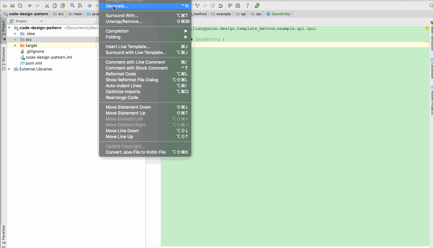 那么,如何使用呢?我们可以使用 GsonFommat 的快捷键,默认 option + s (mac), alt + s (win) 通过以下方式修改快捷键。或者点击工具栏的 Generate 来唤起生成工具。