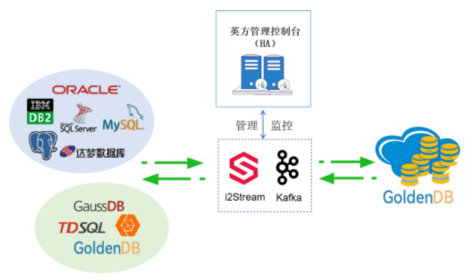 英方软件联合 GoldenDB 发布了 GoldenDB 分布式数据库迁移同步解决方案,通过 GoldenDB 高可用、高可靠的数据库服务和英方 i2Stream 异构数据库复制功能,为用户提供从原数据库向 GoldenDB 数据库实时迁移同步的服务,助力数据库国产化应用。