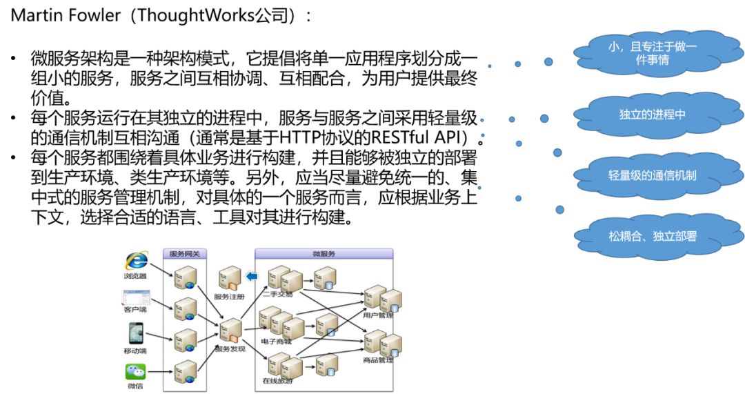 微服务的定义源于 2014 年 3 月 Martin Fowler 所写的一篇文章“Microservices”,微服务的四个特性定义抽象为“小、独、轻、松”。