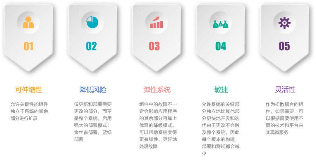 敏捷:开发成本降低,响应速度加快。各个开发团队的人员不必耗费大量时间了解整个服务端架构,主要通过了解某个微服务的金融业务需求和技术体系即可参与开发,从而降低了学习成本以及改动代码带来的风险,代码审查流程的简化也相应地加快了开发响应速度。