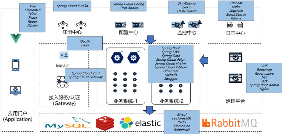 为了满足业务需求,项目中引入了众多的技术栈,中间件,单体应用会给开发者带来很大的困扰,应考虑将应用拆分成多个独立部署的采用最优技术栈实施的微服务。