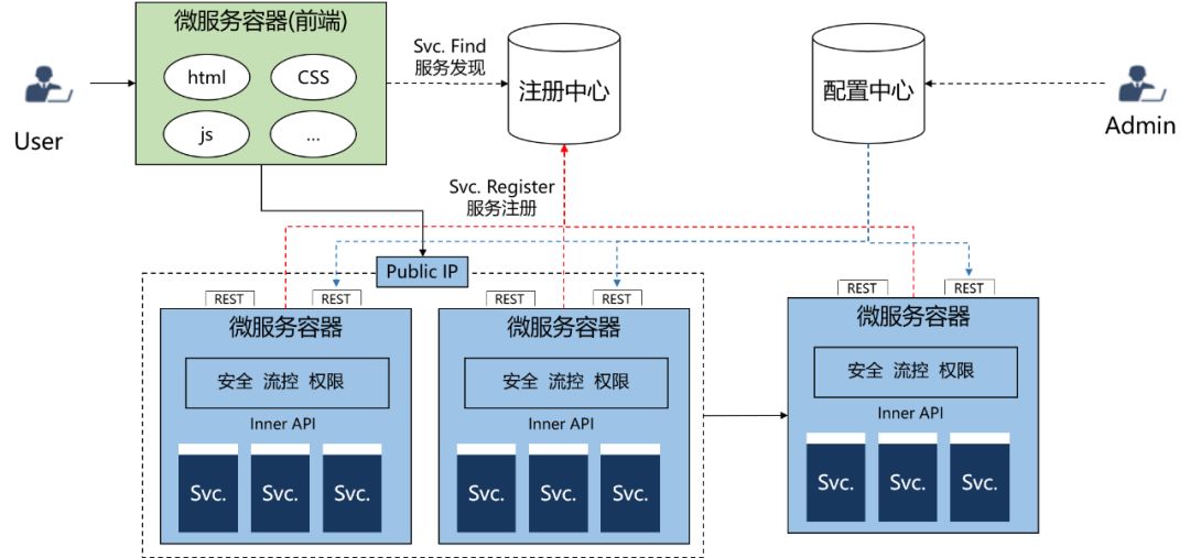 我们来看一下微服务运行容器,要做可靠高效的微服务架构应用,实际上我们需要做的事情还是非常多的。如果没有一个统一的微服务容器,这些能力在每个微服务组件中都需要建设一遍,而且会五花八门,也很难集成到一起。