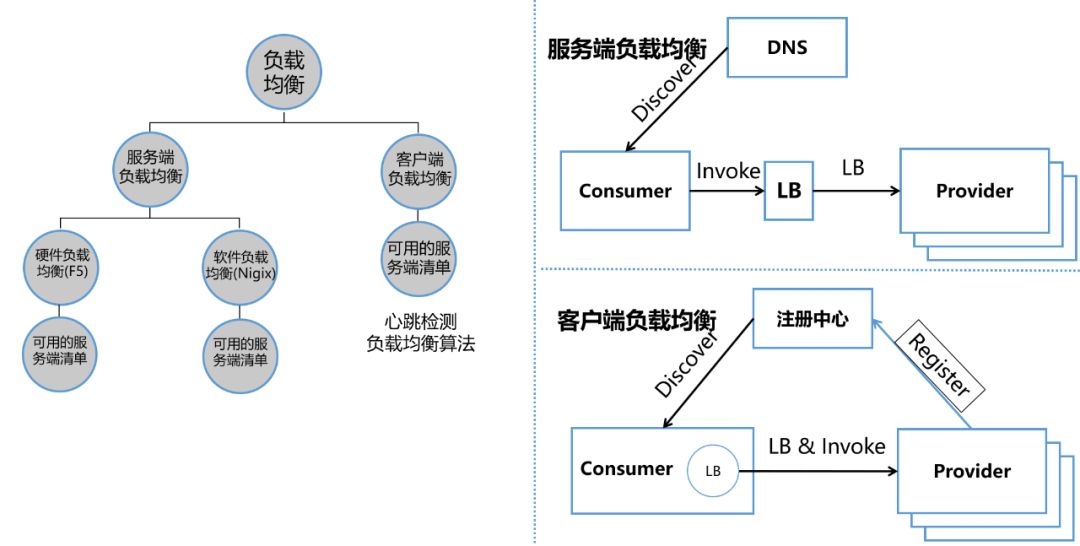 硬件负载均衡的设备或是软件负载均衡的软件模块都会维护一个下挂可用的服务端清单,通过心跳检测来剔除故障的服务端节点以保证清单中都是可以正常访问的服务端节点。当客户端发送请求到负载均衡设备时,该设备按照某种算法(比如线性轮询、按权重负载、按流量负载等)从维护的可用服务端清单中取出一台服务端的地址,然后进行转发。