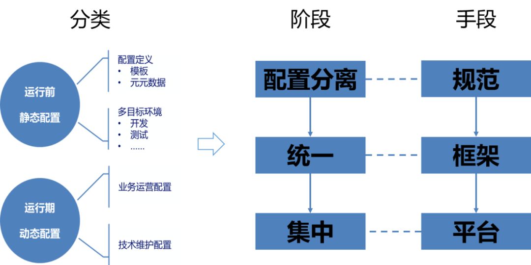 配置文件主要有运行前的静态配置和运行期的动态配置两种。静态配置通常是在编译部署包之前设置好。动态配置则是系统运行过程中需要调整的系统变量或者业务参数。