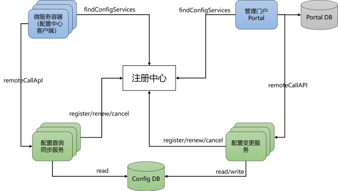 高可用模式,见上图,支撑大规模微服务访问时根据负载情况可以对“配置查询同步服务”进行横向扩展