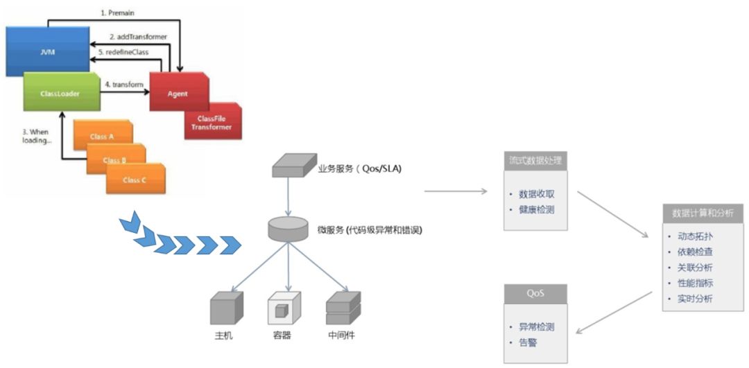 使用agent技术构建一个独立于应用程序的代理程序(即为Agent),用来协助监测、运行甚至替换其他JVM上的程序。使用它可以实现虚拟机级别的AOP功能。