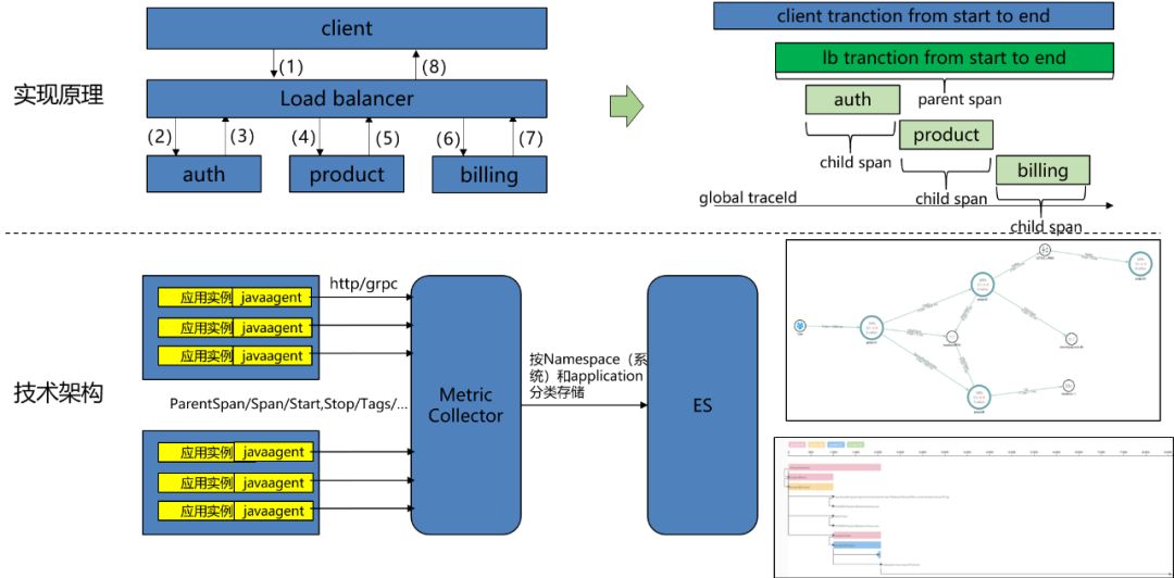 调用链跟踪分析:把同一TraceID的Span收集起来,按时间排序就是timeline。把ParentID串起来就是调用栈。