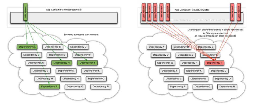 采用微服务架构后,服务之间会有错综复杂的依赖关系,例如,一个前端请求一般会依赖于多个后端服务。