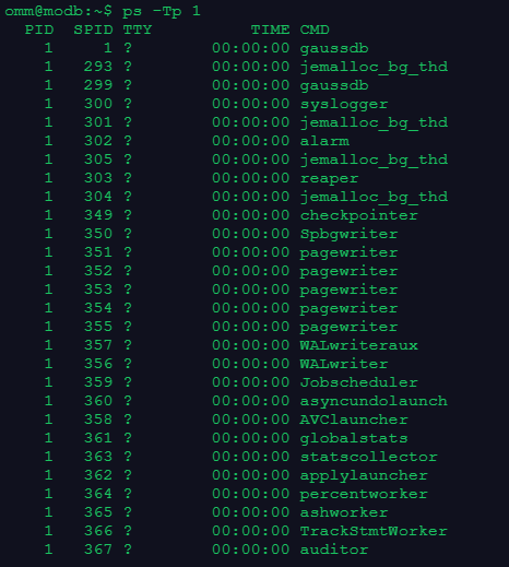 可以看到高斯数据库进程正在运行,然后查看对应的进程和线程