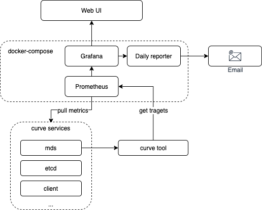 Daily Report: 为了更加便捷的获取系统关键指标,Curve 支持从 Grafana 导出关键 dashbord 通过邮件每天定时发送到订阅者,这样不需要用户每天登录监控系统就可以持续的了解系统状态。