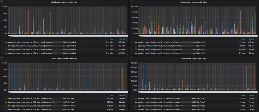 下面是 Curve 块存储 mds dashboard 中的部分 panel,展示了服务端的读写负载。