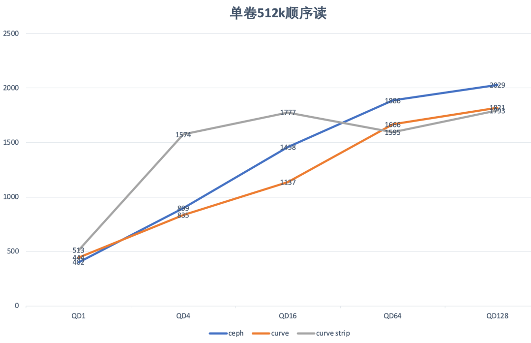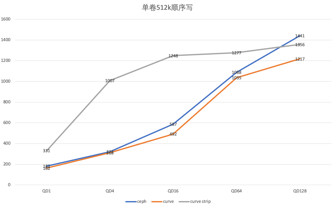 Curve 在单卷大 IO 顺序写的场景下,具有和 Ceph 相当的性能;