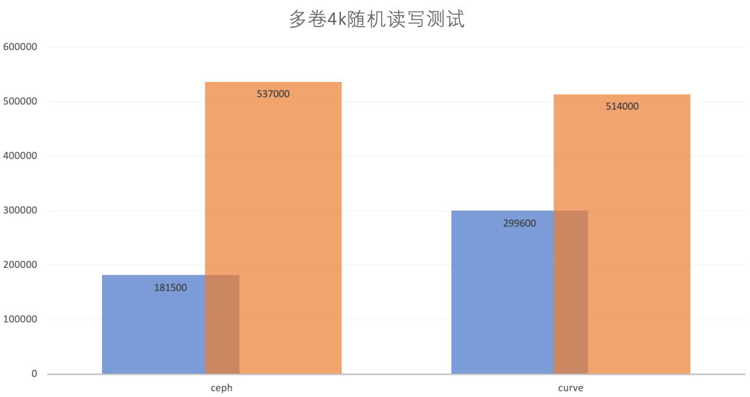 从多卷大IO的顺序读写来看,Curve 和 Ceph 的性能基本相当。
