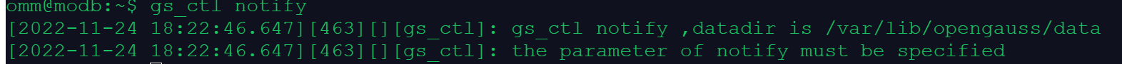 gs_ctl 工具由操作系统用户omm执行。可以执行: