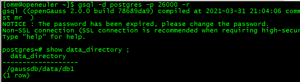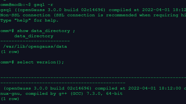 5.在gsql中查看数据文件目录、数据库版本