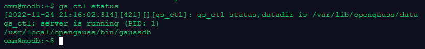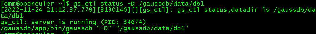 2.使用gs_ctl工具查看数据库状态,判断数据库是否启动。gs_ctl status
