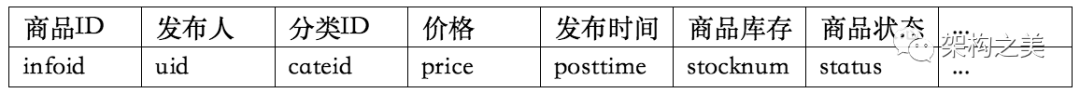 公司具备了大中台小前台的连接生态后,那么小前台业务产生的数据(比如手机业务的商品数据)如何存储呢?以小前台业务产生的商品数据为例,包括了商品公共的数据以及小前台业务个性化的数据。针对商品公共数据和商品个性化数据,存储有两种方案,一是商品公共数据存储在中台部门,商品个性化数据存储在小前台业务部门;第二种方案是商品公共数据和商品个性化数据全部存储在中台部门,有利用数据的统一存储和管理,并且使得业务查询等接入也非常简单。推荐大家使用第二种数据存储方案(同时同学们思考下第一种存储方案带来的问题有哪些?),那么针对商品的公共数据和个性化数据设计存储表结构:商品公共数据表 +商品业务个性化扩展数据表,其中商品公共数据表包含了所有业务线商品公共的字段,如表3所示:商品ID、发布人、分类ID、价格、发布时间、商品库存、商品状态等等。
