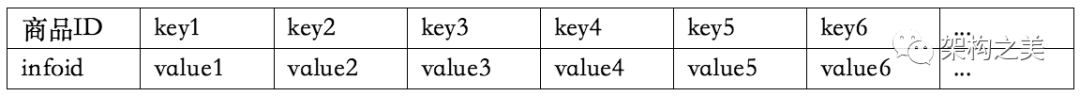 其中商品个性化数据表(如表4)采用Key,Value扩展列的方式进行存储,比如Key的类型可以固定几种类型:比如Long类型、Double类型、String类型,业务个性化数据都使用固定的几种数据类型来表示和存储,列中Key的含义在映射表(如表5)中指定了每个Key具体的的业务字段含义。