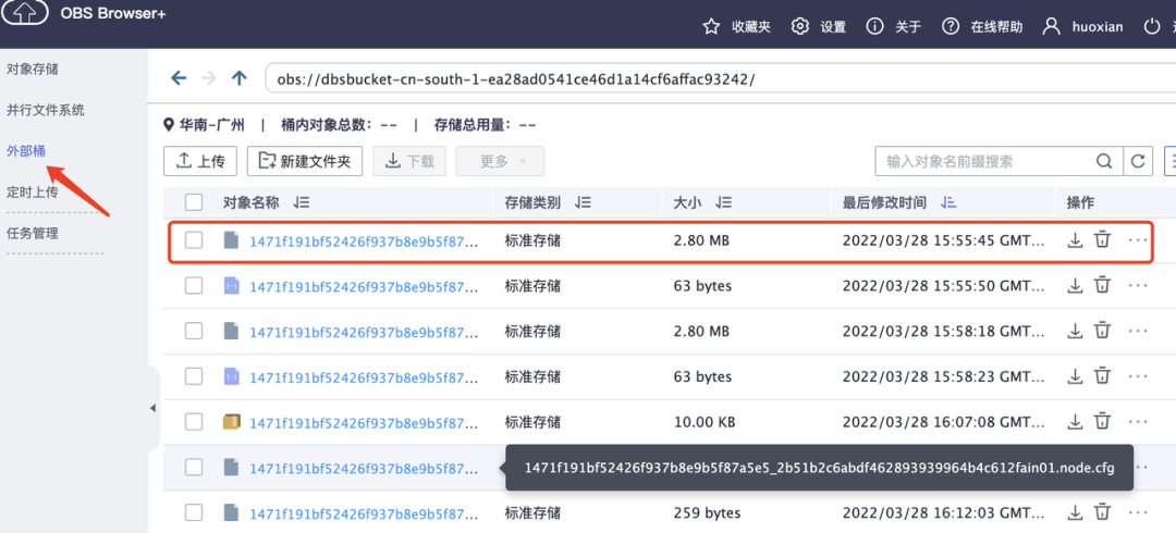 如果我们拿到了ak sk可以登录OBS Browser查看外部桶,看用户是否将备份放到其中。