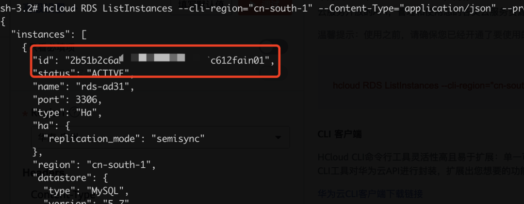 hcloud RDS ListInstances --cli-region="cn-south-1" --Content-Type="application/json" --project_id="0a8453d1f700250e2f02c00e683b8531"