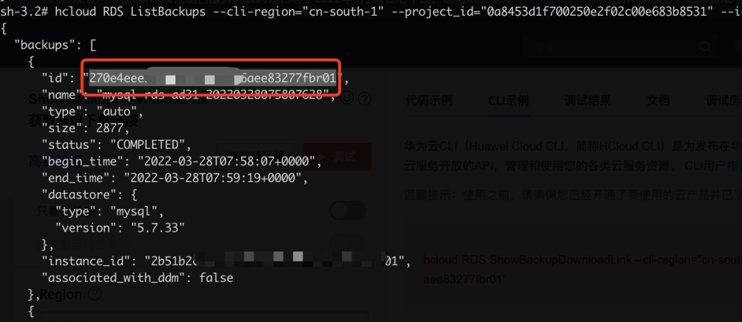 下面介绍下如何使用华为云cli来获取备份下载链接。
