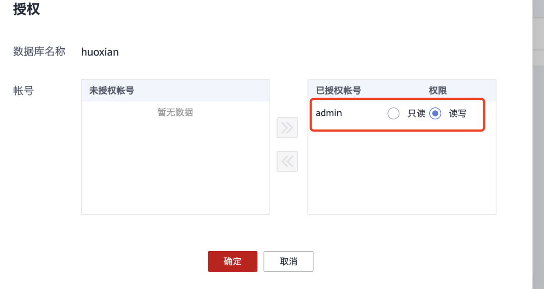 hcloud RDS AllowDbUserPrivilege --cli-region="cn-south-1" --instance_id="dddddd" --project_id="0a8453d1f700250e2f02c00e683b8531" --db_name="huoxian" --users.1.readonly=false --users.1.name="admin"