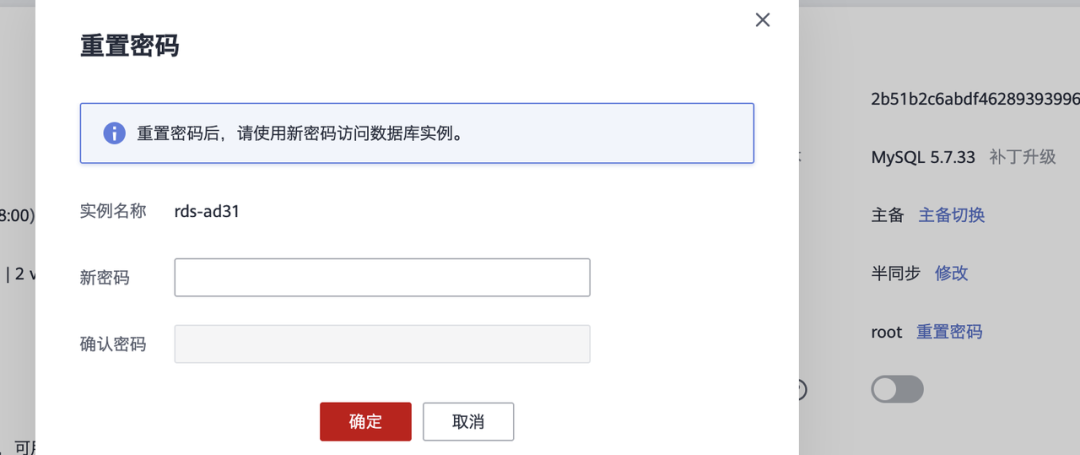 hcloud RDS ResetPwd --cli-region="cn-south-1" --instance_id="2b51b2c6abdf462893939964b4c612fain01" --project_id="0a8453d1f700250e2f02c00e683b8531" --db_user_pwd="1234qwer!"