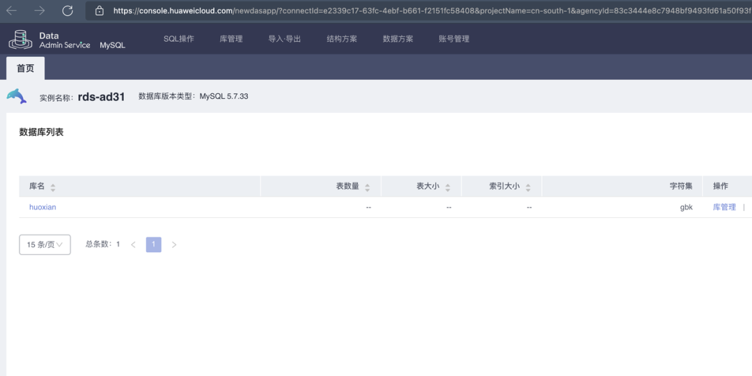 华为云控制台需要数据库的密码才可以登录执行语句,我们可以通过泄漏的AK SK来新增账号或修改原账号密码来登录数据库,下面第五节会讲到。