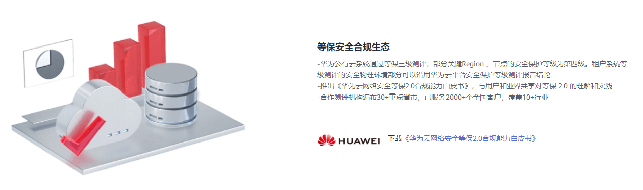 华为云本身就通过了等保四级和五级认证,在网络安全防护方面有着非常雄厚的技术实力,并且目前已经服务了全国3000多家客户,足迹遍布30多个重点省市,30天就可以通过等保评测。凭借20+自主研发的云服务安全和200+伙伴安全服务,也完全有能力帮助客户构建立体云安全防护体系。让等保服务不仅满足法律标准,还真正帮助企业保护好信息安全,助力企业更好经营。