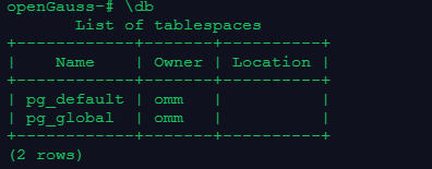 \db命令,元命令\db的作用是显示openGauss数据库集簇中,目前有哪些表空间。