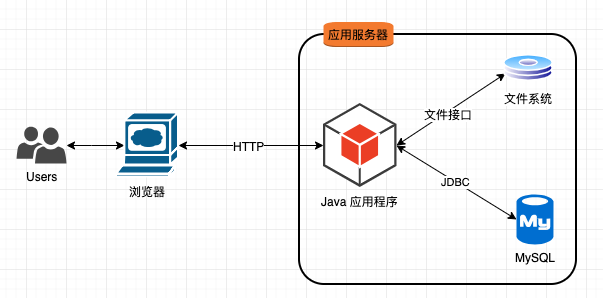 用户通过浏览器直接与 Java 应用程序进行交互(通常是 Tomcat);