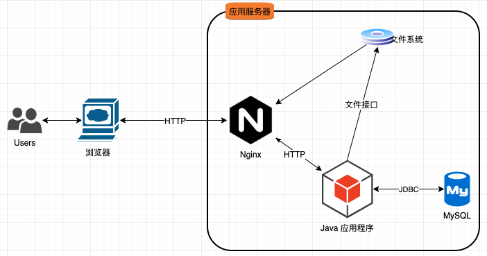 用户不在直接与 Java 应用程序进行交互,而是与 Nginx 进行交互;
