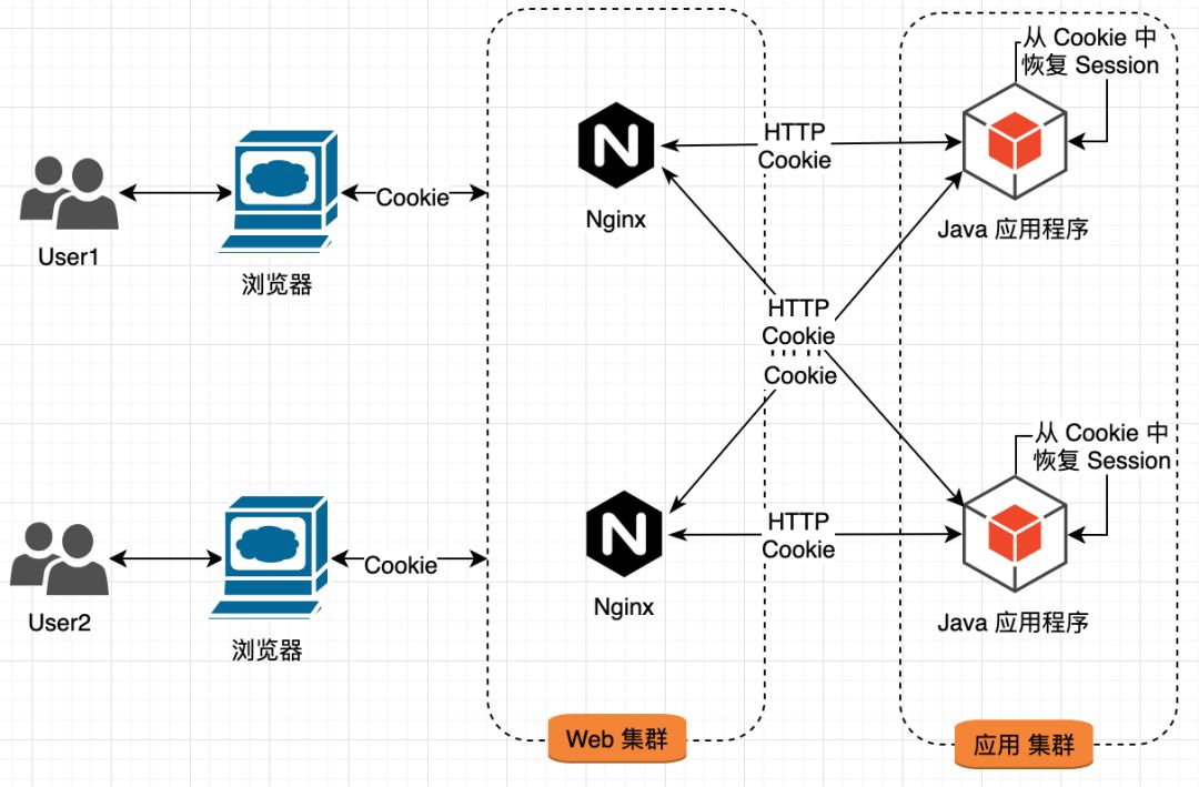将 Session 数据编码到 Cookie 中,每次 Java 应用程序使用 Session 时,都从 Cookie 中重建 Session。