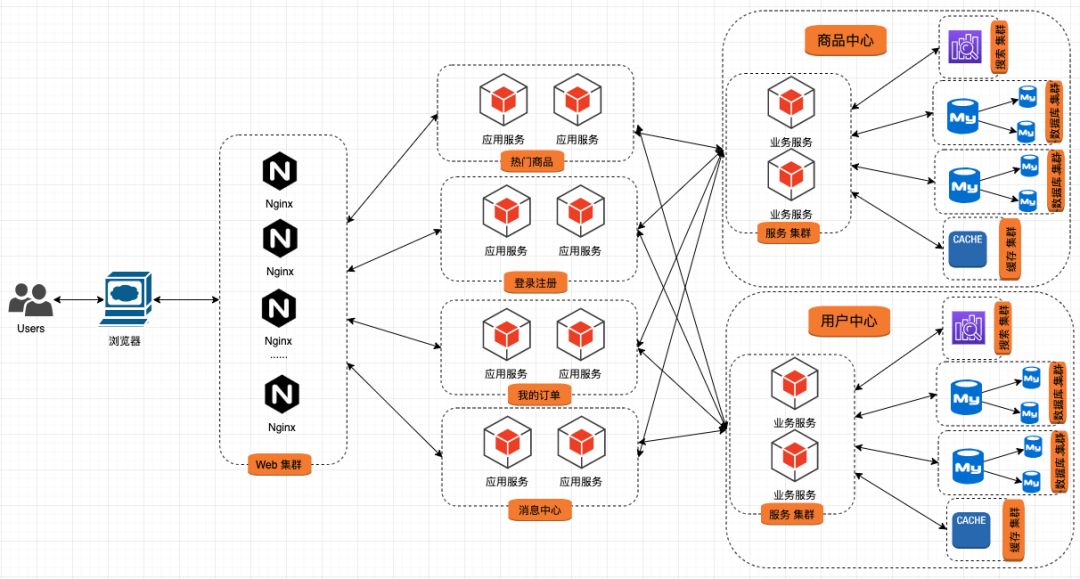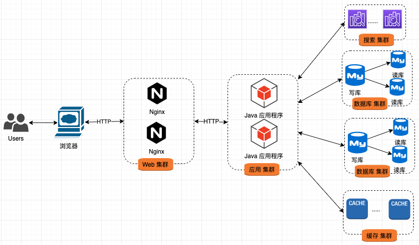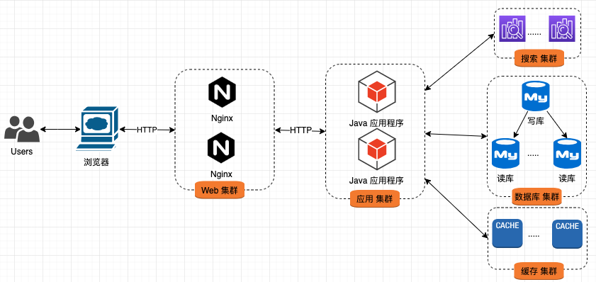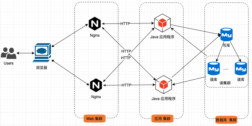 Web 集群 与 应用集群 间通过 HTTP 协议进行交互;