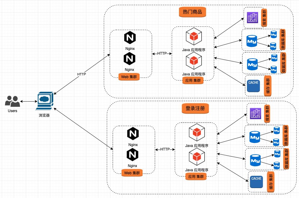 通过不同的域名或 URL 将整个系统分解为多个子系统;