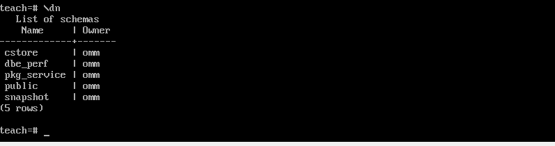 6、--\dn命令,元命令\dn的作用是显示当前数据库有哪些数据库模式: