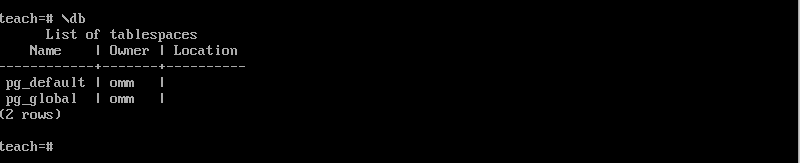 5、--db 显示当前数据库集簇中目前有哪些表空间: