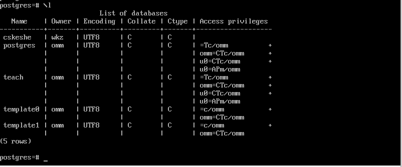 如果我进入了我的teach数据库中,那么就可以直接用\c postgres进入postgres数据库