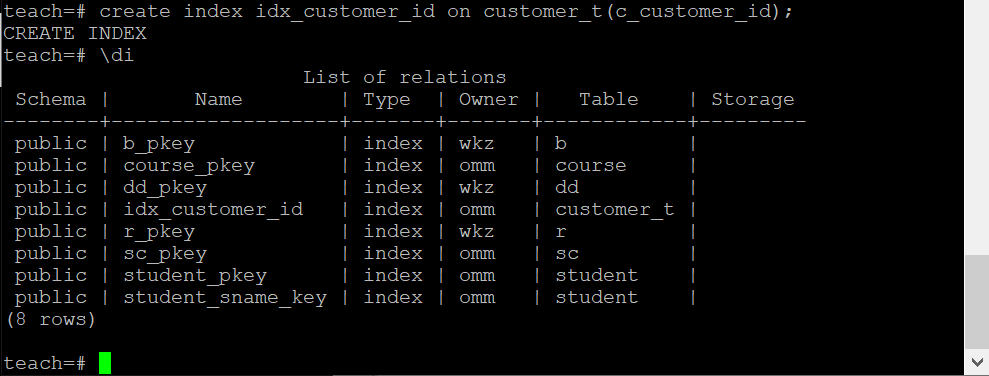 11、--\di IndexName命令,查看索引信息,元命令\di IndexName的作用是查看某个索引的信息: