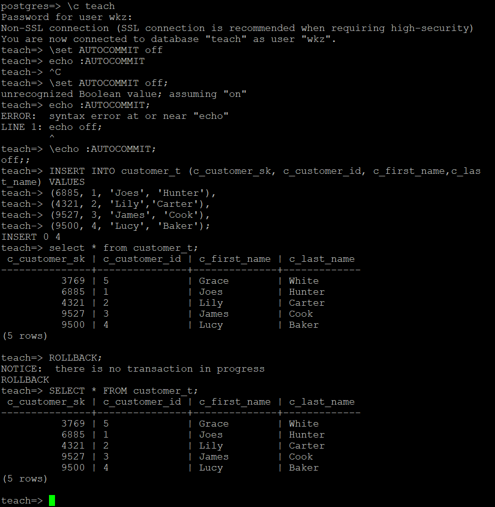 首先进入数据库,然后查看gsql中事务是否默认为自动提交