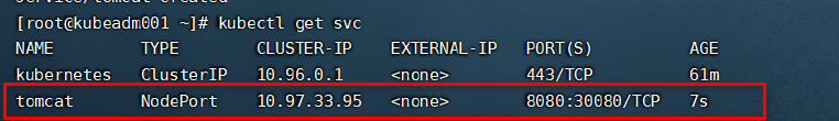 NAME TYPE CLUSTER-IP EXTERNAL-IP PORT(S) AGE