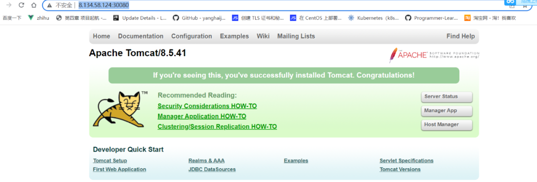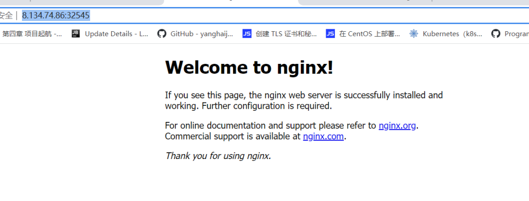 上图可看到刚才创建的nginx的service在宿主机映射的端口是32545,在浏览器访问:http://8.134.74.86:32545/