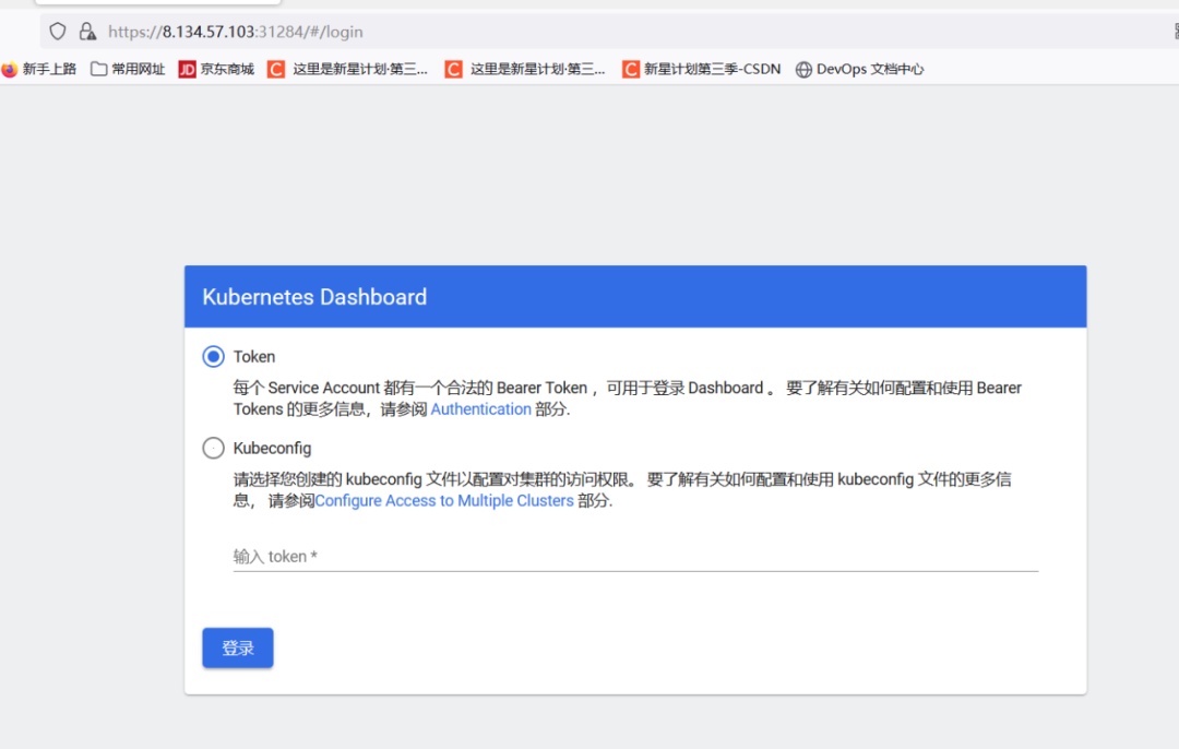 通过token令牌访问dashboard