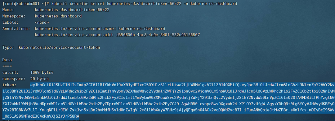 kubectl describe secret kubernetes-dashboard-token-9mwrn -n kubernetes-dashboard