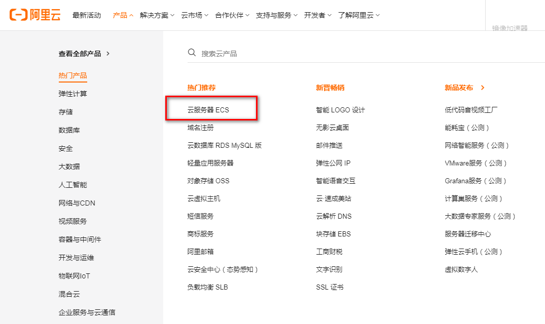 进入阿里云选择云服务器 ECS