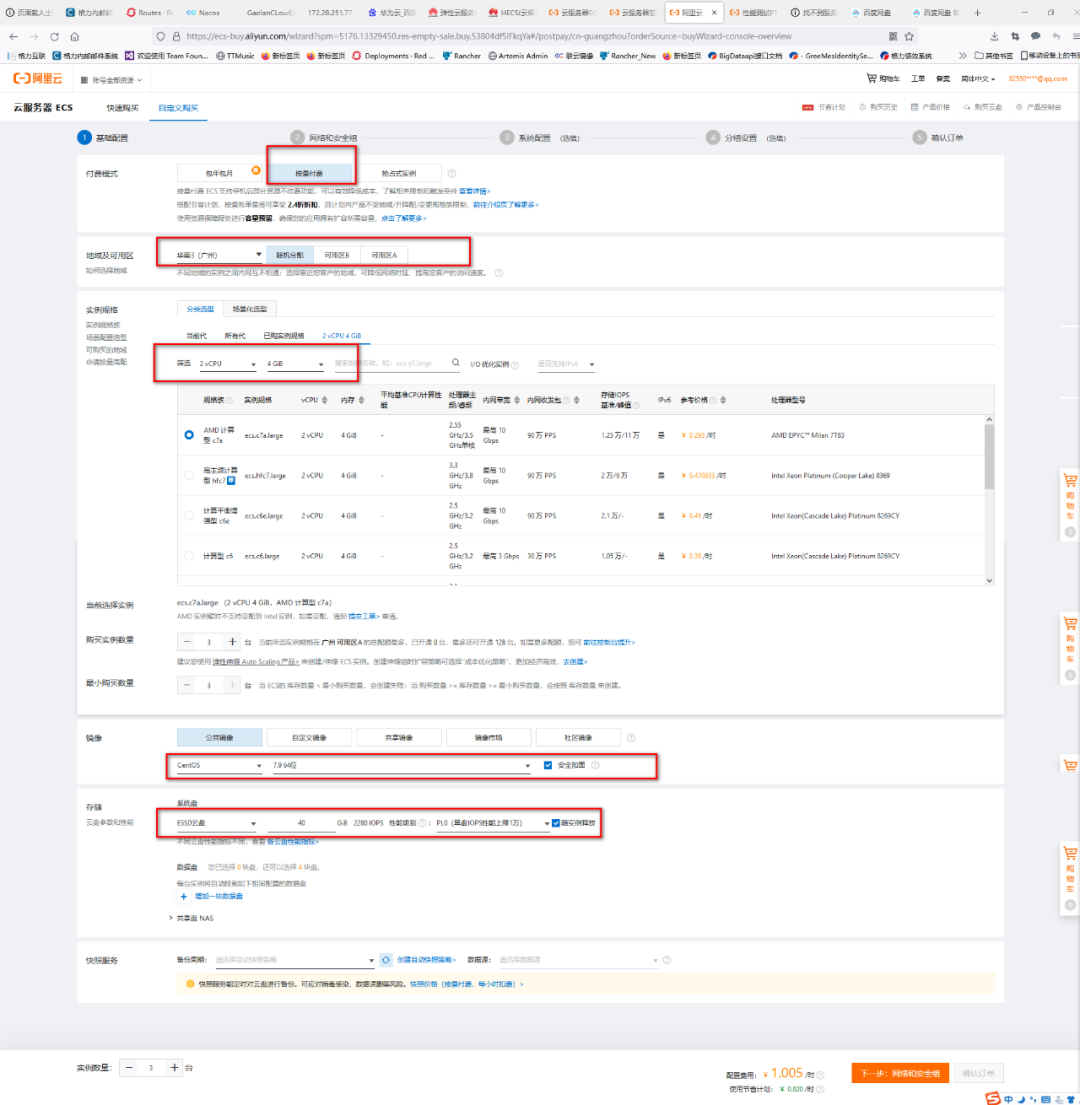 开始创建,然后选择按量付费,其他可以自行选择