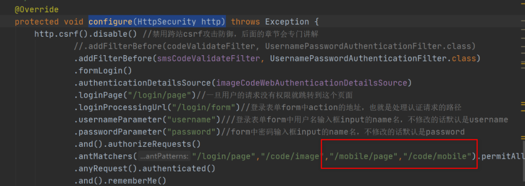 .antMatchers("/login/page","/code/image","/mobile/page","/code/mobile").permitAll()