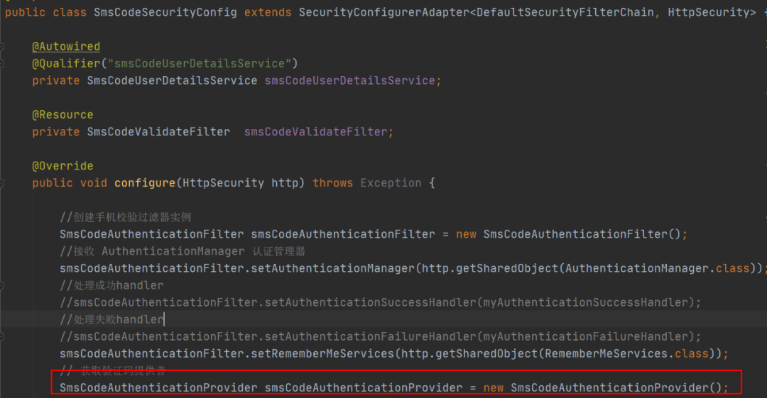 SmsCodeAuthenticationProvider smsCodeAuthenticationProvider = new SmsCodeAuthenticationProvider();